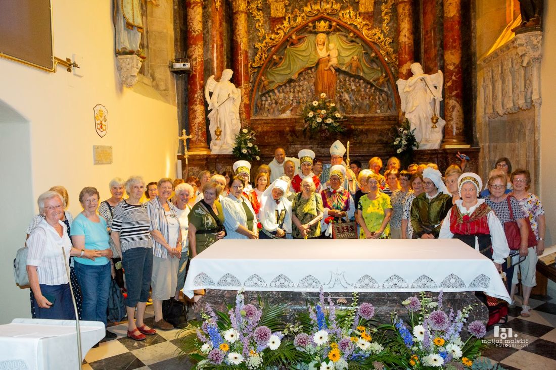 S ČIPKAMI POD MARIJIN PLAŠČ Letos je bilo praznovanje Šentvoršce na Ptujski Gori še posebej slovesno. Začelo se je že na predvečer praznika, v torek, 1. julija ob 20. uri s slovesno sveto mašo, ki jo je vodil mariborski nadškof msgr. Alojzij Cvikl. Po njej je potekala procesija z lučkami, verniki pa so nato ostali v nočnem bedenju pred Najsvetejšim. Osrednji praznični dan, sreda, 2. julija se je začel že opolnoči s prvo sveto mašo, sledila je maša ob 8. uri, glavna praznična slovesnost pa je bilo ob 10. uri. Znova jo je vodil nadškof Alojzij Cvikl, ki je ob tej priložnosti blagoslovil nove klekljane oltarne prte, ki jih je v okviru vseslovenskega projekta »S čipkami pod Marijin plašč« posebej za to svetišče izdelalo 230 klekljarice in klekljari z vseh koncev Slovenije. Poleg oltarnih prtov so bile izdelane tudi štiri albe, eno od teh je v dar dobil nadškof Cvikl. Slovesno sveto mašo je prenašala televizija Exodus.